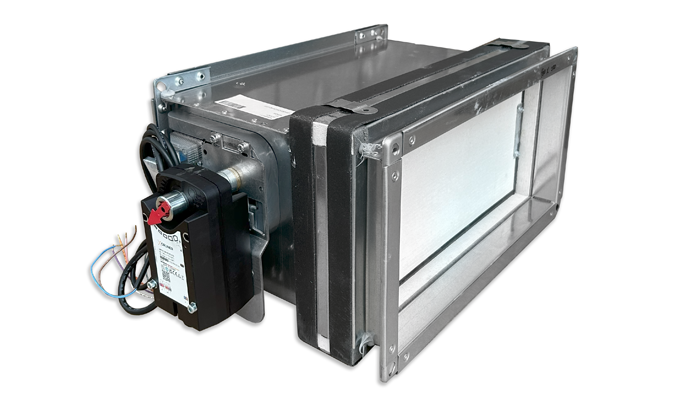 Čtyřhranná požární klapka pro vzduchovody, které pronikají do ohnivzdorných stěn nebo podlah. S 25 mm silným uzavíracím listem vyrobeným ze žáruvzdorného materiálu. Třída účinnosti úniku C podle normy EN1751: 2014, část C.3.
